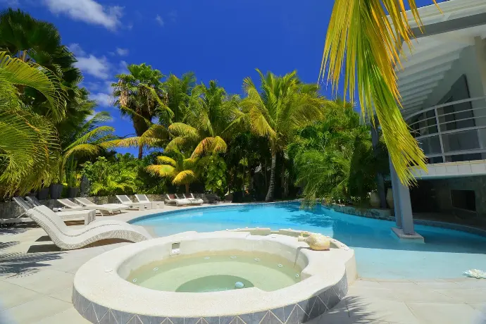 C’est au milieu d’un verdoyant jardin tropical à 500m des plages que se situe la résidence Adam & Eve. Nous disposons de 7 logements décorés avec beaucoup de charme et parfaitement aménagés. Vous pourrez profiter en toute quiétude de la piscine et du jacuzzi dans la tenue qui vous plaira.