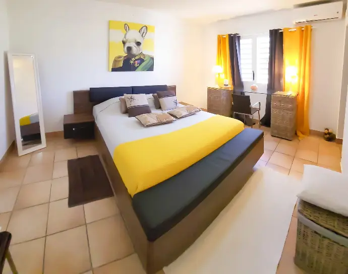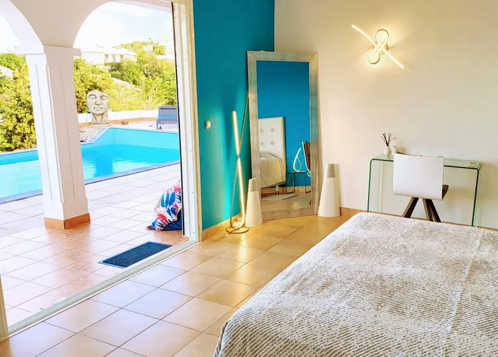 Villa de charme avec une vue inégalable sur l’ile de Tintamarre et l’ile de Pinel. Location en totalité privative pour maximum 6 personnes ou location à la chambre en partageant la cuisine, le salon intérieur - extérieur, salle à manger intérieur - extérieur et sa piscine pleine vue mer. Composée de 3 chambres avec son dressing, sa salle de bain et toilettes.